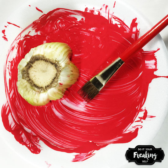 Use the paintbrush to spread a thin layer of red paint onto the celery stalk or allow kiddos to dip straight into the paint. Seriously, this craft is so easy I’m not sure you’ll need more instructions.