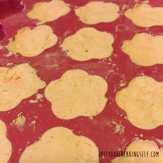 3. Squish your mixture into some mini-ice cube or silicone trays and freeze for about an hour.