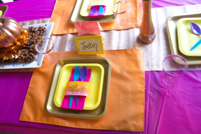 I usually serve everything buffet style, but I keep seeing all of these amazing tablescapes on pinterest and instagram and I really wanted to try my hand at one. So I partnered with Oriental Trading to create this beautiful vibrant Friendsgiving tablescape.