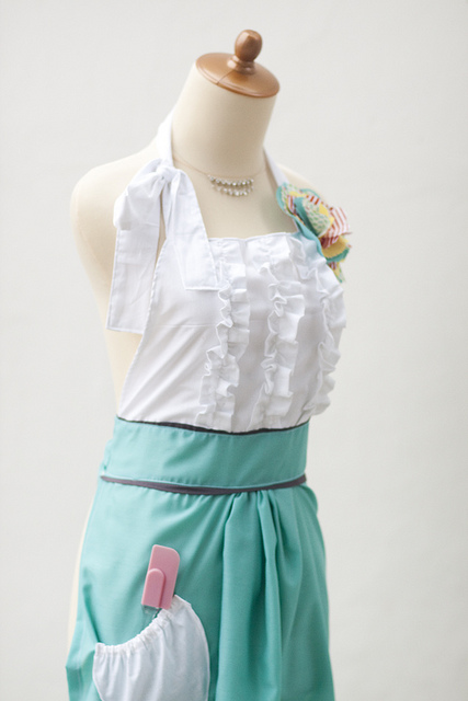 I personally have quite a tidy collection that I’m very proud of. I tend to get them from discount stores like TJ Maxx and Ross, but I’ll admit I’ve been weak and bought one from Anthropologie for way more than I should have. Honestly, I know it might sound sexist or whatever, but I think every woman that likes to entertain should have at least one hostess apron. They let you look cute while not messing up that cute party dress you spent hours picking out… Or just threw on because you just took a shower and are running late getting things out of the oven. You don’t have to spend a lot of money on one either. In fact there are a fair few in this list that you can make for super cheap.